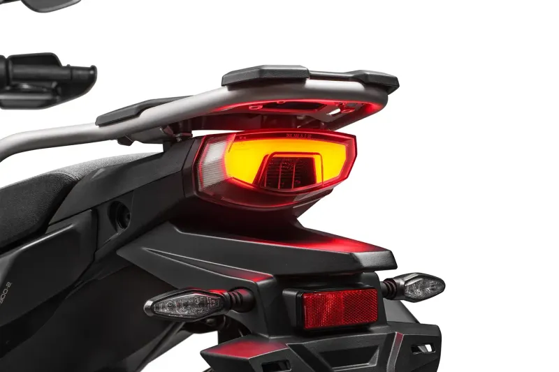 CFMOTO 1000MT-X to nowy flagowy przedstawiciel dużych motocykli typu Adventure Touring — zaprojektowany tak, byś mógł bez ograniczeń podążać swoją drogą. Jego sylwetka łączy surowy, dynamiczny styl z funkcjonalnością długodystansowej maszyny. Ostre linie, agresywne wloty powietrza i solidne panele boczne podkreślają gotowość do jazdy zarówno po asfaltowych drogach, jak i wymagających terenach.