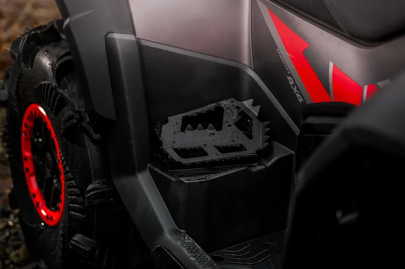 Pokonaj najtrudniejszy teren z quadem zbudowanym z myślą o mocy i zwinności. Zaawansowane tryby jazdy i trzystopniowe wspomaganie układu kierowniczego dostosowują się do każdego wyzwania, od pokonywania przeszkód po szybkie zjazdy. Dzięki podwyższonemu rurze wlotowej i osłoniętej przed błotem chłodnicy CFORCE 1000 MV bez trudu przemierzaj rzeki i błotniste doły. Szersze błotniki i antypoślizgowe ząbkowane podnóżki zapewniają niezrównaną stabilność i kontrolę.